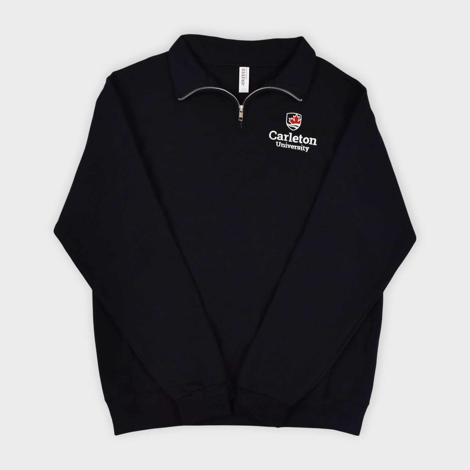 - Carleton University wordmark embroidered on left chest